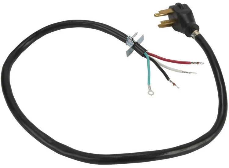 ⚡️ Specifications: OEM 4-foot, 4-wire, 40-amp power cord with right-angle plug and ring terminal connectors.